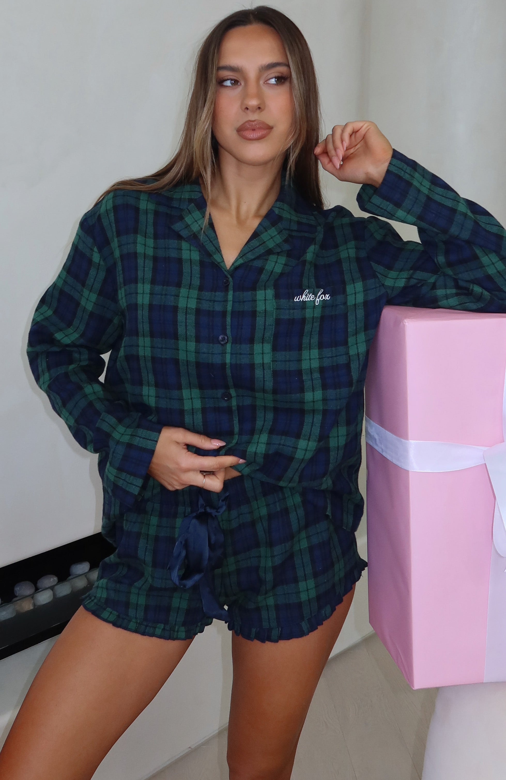 Feel oh so merry in The That Time Of The Year Pyjama Shorts in Green/Navy! Featuring a thick elasticated waistband with drawstring detail and a classic plaid pattern, these lightweight shorts offer a relaxed fit ideal for lounging. Pair them with the matching That Time Of Year Long Sleeve Pyjama Top Green/Navy and wait for Santa.Â